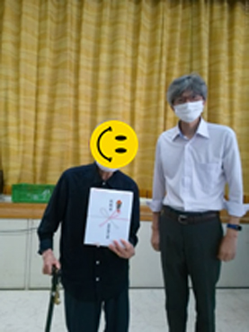 今年の初敬老の方は2名の方で、園長より記念品の贈呈が有りました。