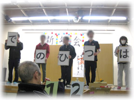 誕生日会・お楽しみ会を食堂にて行いました。コロナ感染対策の為、12月・1月に本来行う予定だった行事(おもかげクイズ・くじ引き)を行いした。久しぶりの行事に皆さんの笑顔が沢山見られました。