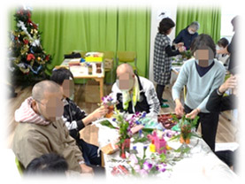食堂にて、フラワーサークルの方々の協力により、フラワーアレンジメントが行われました。