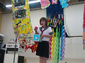 6日の七夕祭りでは、民踊部の方々の踊りの後にアイスを食べていただきました。